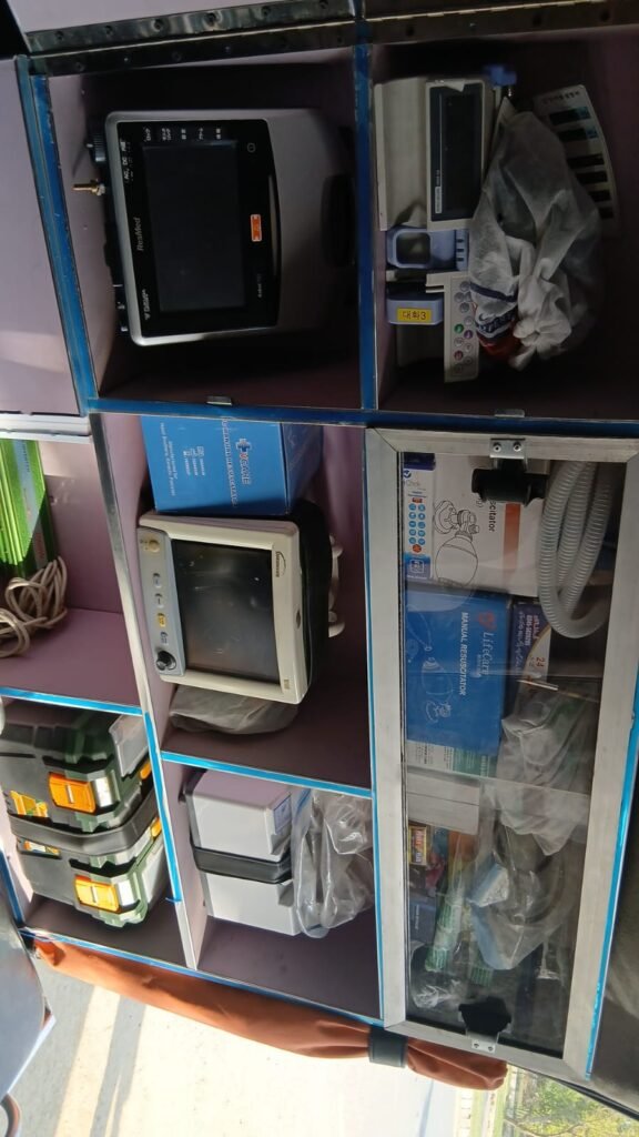 Our ambulances are equipped with a range of equipment, including ventilators, cardiac monitors, oxygen tanks, defibrillators, IV pumps, and more, to ensure that patients receive the highest level of care during transport.